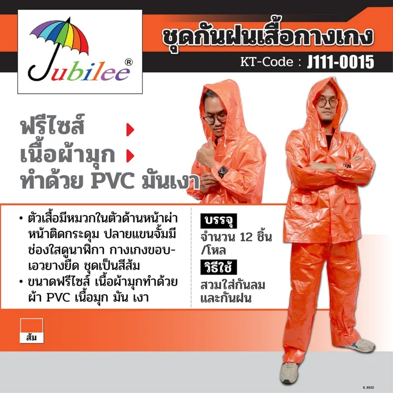 ชุดกันฝนเสื้อกางเกง JUBILEE (จูบิลี่)