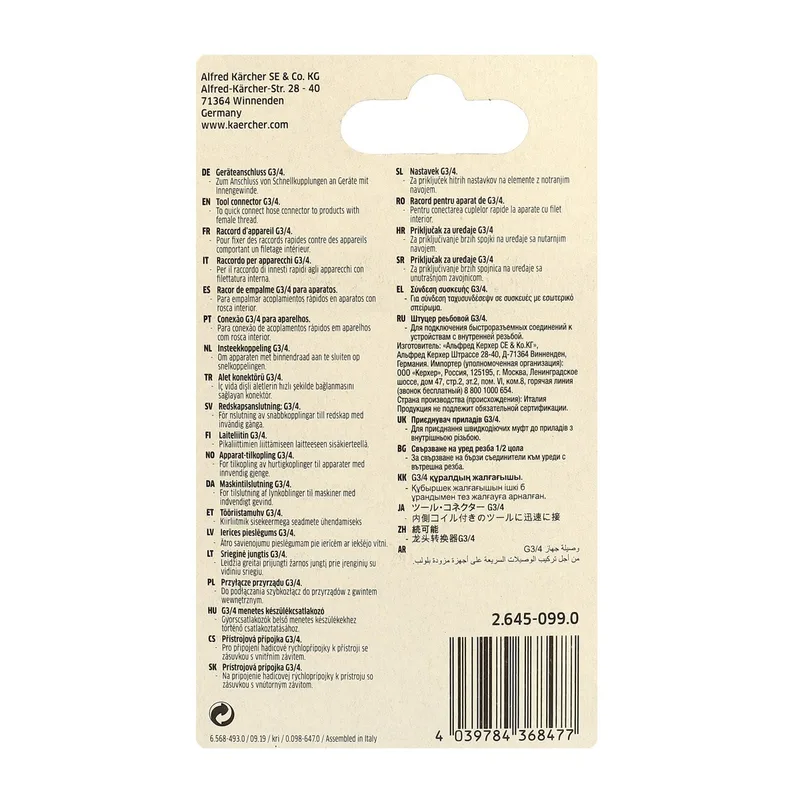 Karcher อะไหล่ Spare Part CONNECTION APPLIANCES G3/4 Code 2.645-099.0