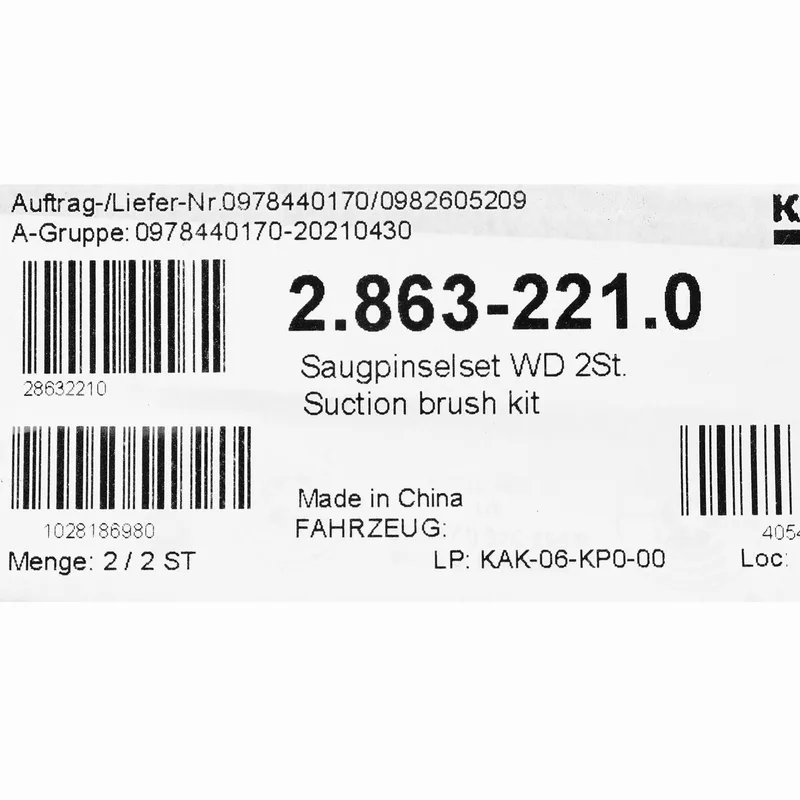 KARCHER อะไหล่ Spare Part SUCTION BRUSH KIT WD 2PC Code 2.863-221.0 (คาร์เชอร์)