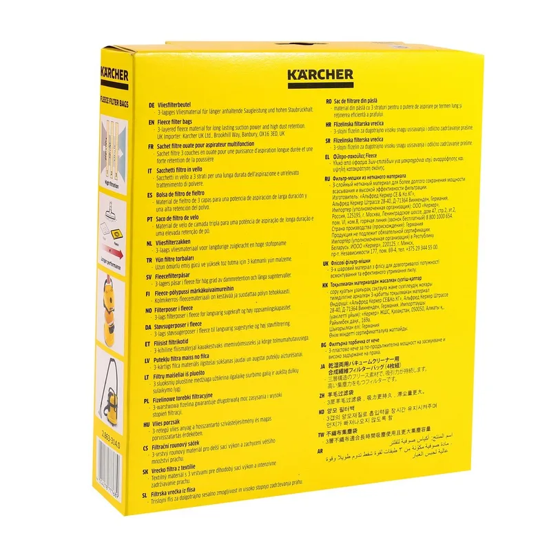 KARCHER อะไหล่ Spare Part FILTER BAG FLEECE WD3 (4PCS/1PAC) Code 2.863-314.0 (คาร์เชอร์)