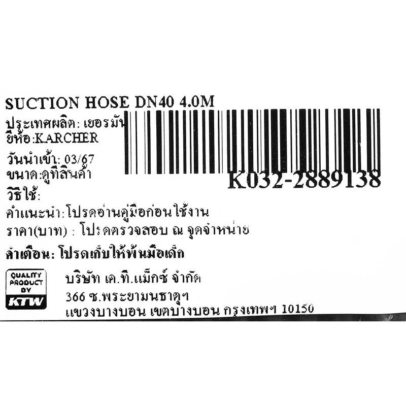 Karcher อะไหล่ Spare Part SUCTION HOSE DN40 4.0M Code 2.889-138.0