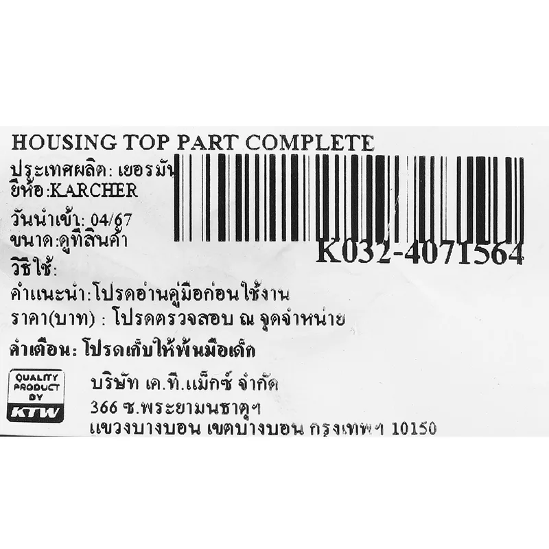 KARCHER อะไหล่ Spare Part HOUSING TOP PART COMPLETE Code 4.071-564.0