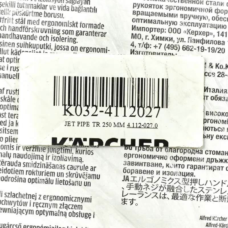 Karcher อะไหล่ Spare Part JET PIPE TR 250 MM Code 4.112-027.0
