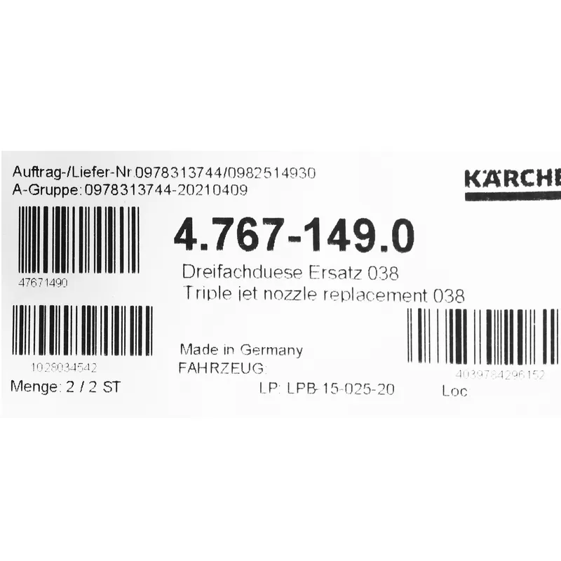 KARCHER อะไหล่ Spare Part TRIPLE JET NOZZLE 038 Code 4.767-149.0 (คาร์เชอร์)