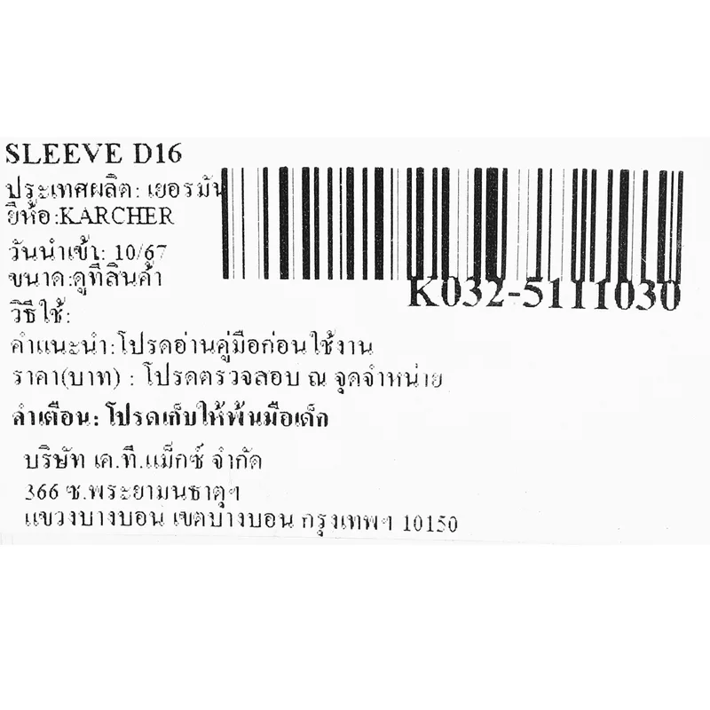 Karcher อะไหล่ Spare Part SLEEVE D16 Code 5.111-030.0