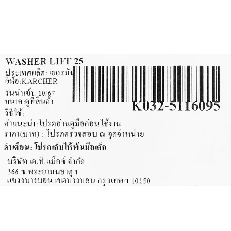 KARCHER อะไหล่ Spare Part WASHER LIFT 25 Code 5.116-095.0