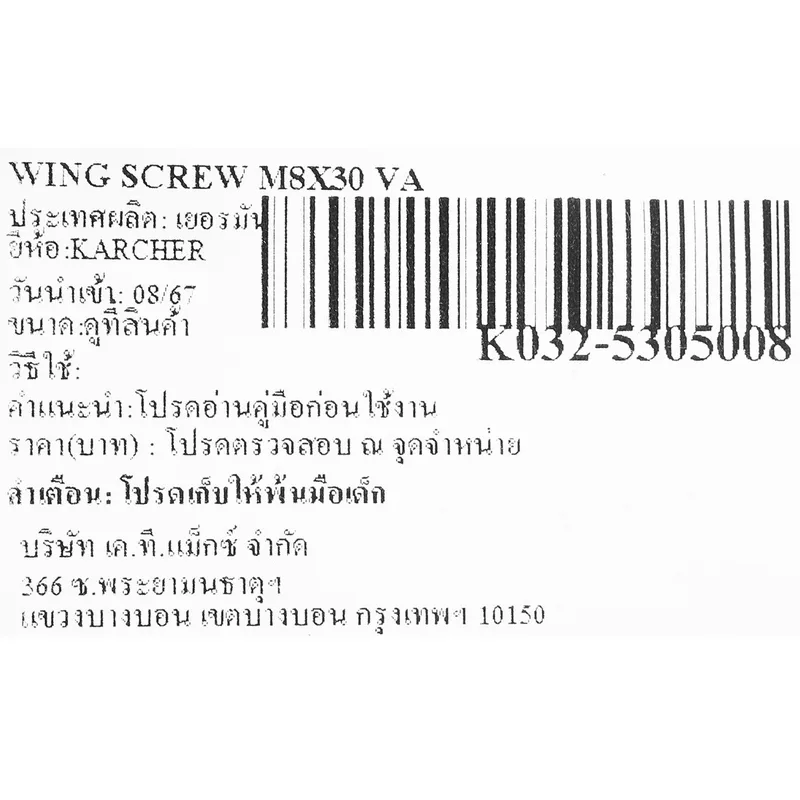 KARCHER อะไหล่ Spare Part WING SCREW M8X30 VA Code 5.305-008.0 (คาร์เชอร์)