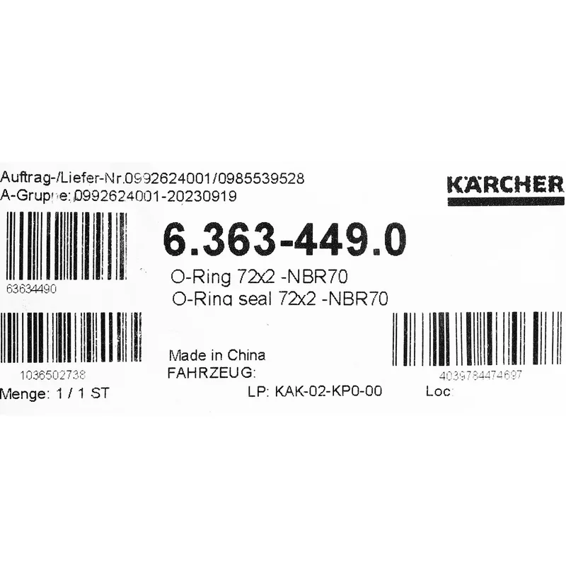 Karcher อะไหล่ Spare Part O-RING Code 6.363-449.0