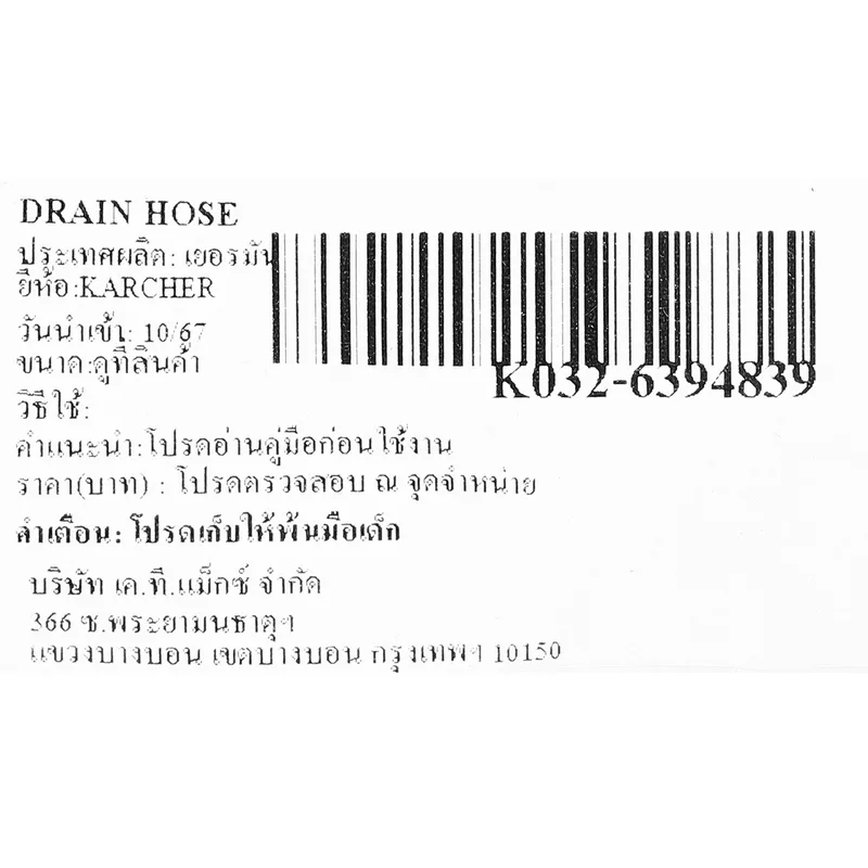 KARCHER อะไหล่ Spare Part DRAIN HOSE Code 6.394-839.0 (คาร์เชอร์)