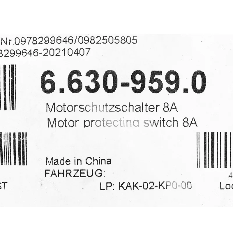Karcher อะไหล่ Spare Part MOTOR PROTECTING SWITCH 8A Code 6.630-959.0