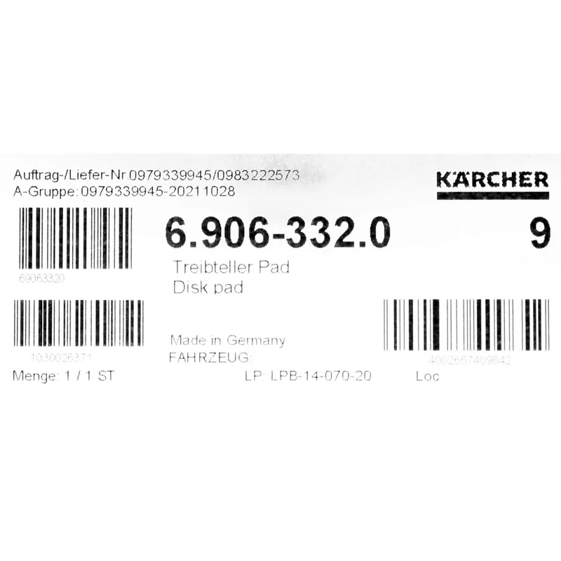 KARCHER อะไหล่ Spare Part PAD DRIVEBOARD(แทน 6.906-078) Code 6.906-332.0 (คาร์เชอร์)