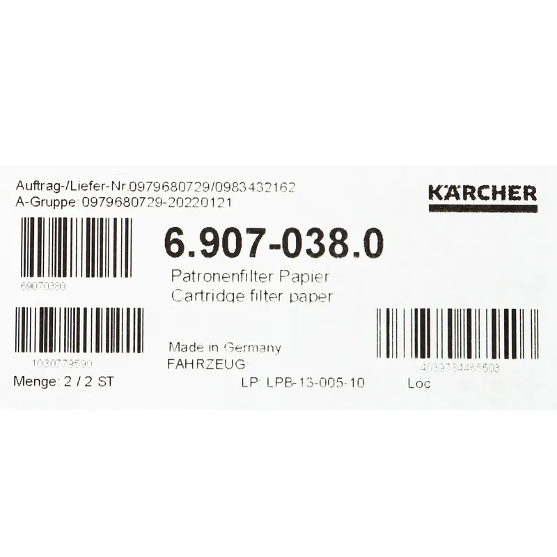 KARCHER อะไหล่ Spare Part *CARTRIDE FILTER PAPER Code 6.907-038.0 (คาร์เชอร์)