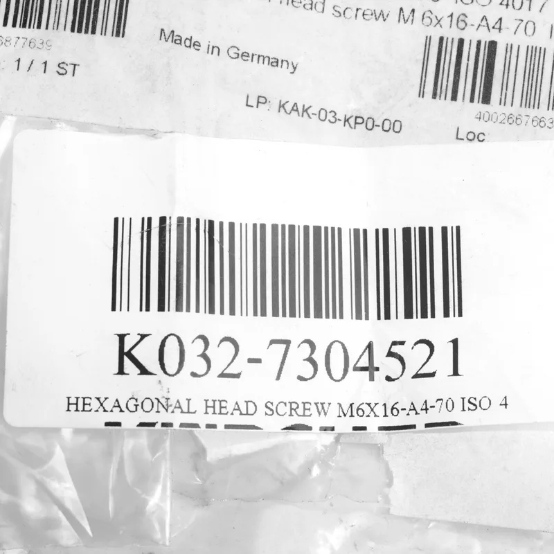 Karcher อะไหล่ Spare Part HEXAGONAL HEAD SCREW M6X16-A4-70 ISO 4 Code 7.304-521.0
