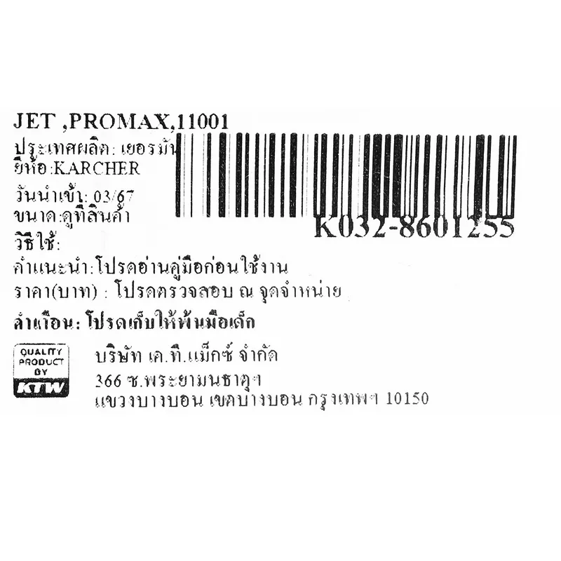 KARCHER อะไหล่ Spare Part JET ,PROMAX,11001 Code 8.601-255.0