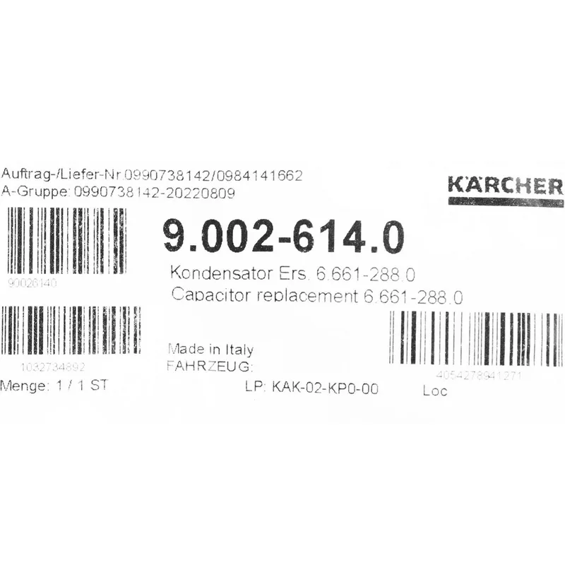 Karcher อะไหล่ Spare Part CAPACITOR REPLACEMNT Code 9.002-614.0