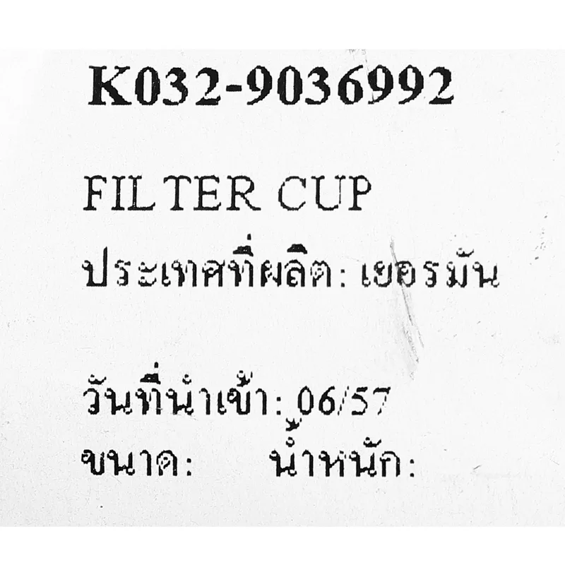 - ชื่ออะไหล่: FILTER CUP