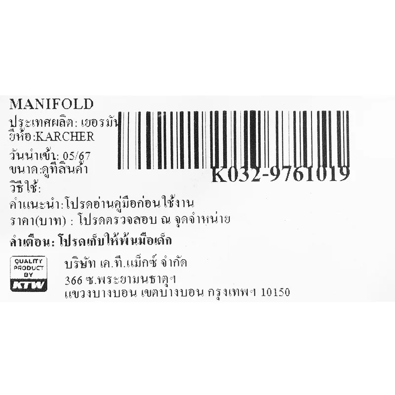 อะไหล่ Manifold ใช้กับ เครื่องฉีดน้ำแรงดันสูงน้ำเย็น KARCHER รุ่น