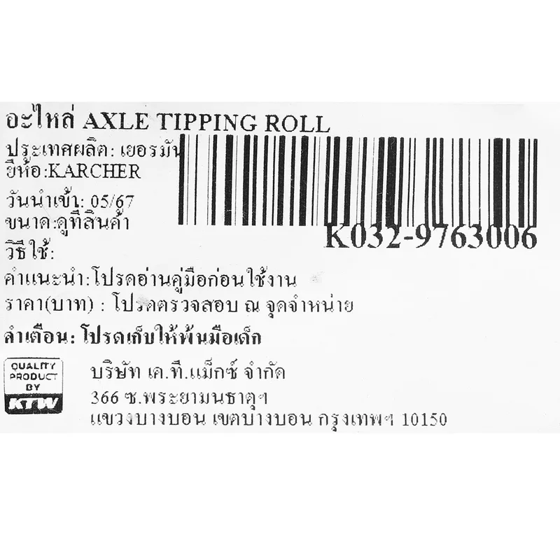 KARCHER อะไหล่ Spare Part อะไหล่ AXLE TIPPING ROLL Code 9.763-006.0 (คาร์เชอร์)