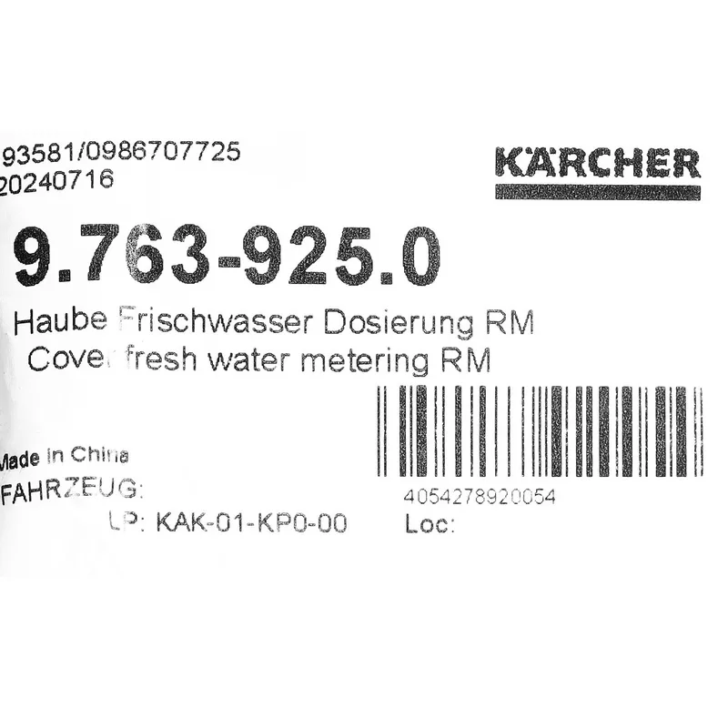 Karcher อะไหล่ Spare Part COVER FRESH WATER METERING RM Code 9.763-925.0