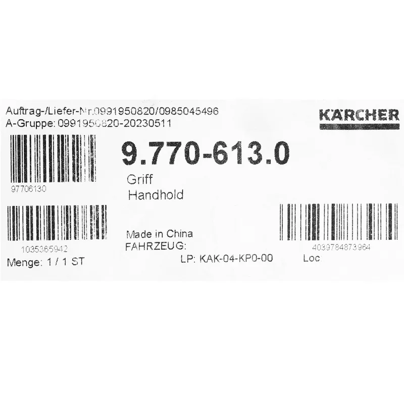 Karcher อะไหล่ Spare Part HANDHOLD Code 9.770-613.0
