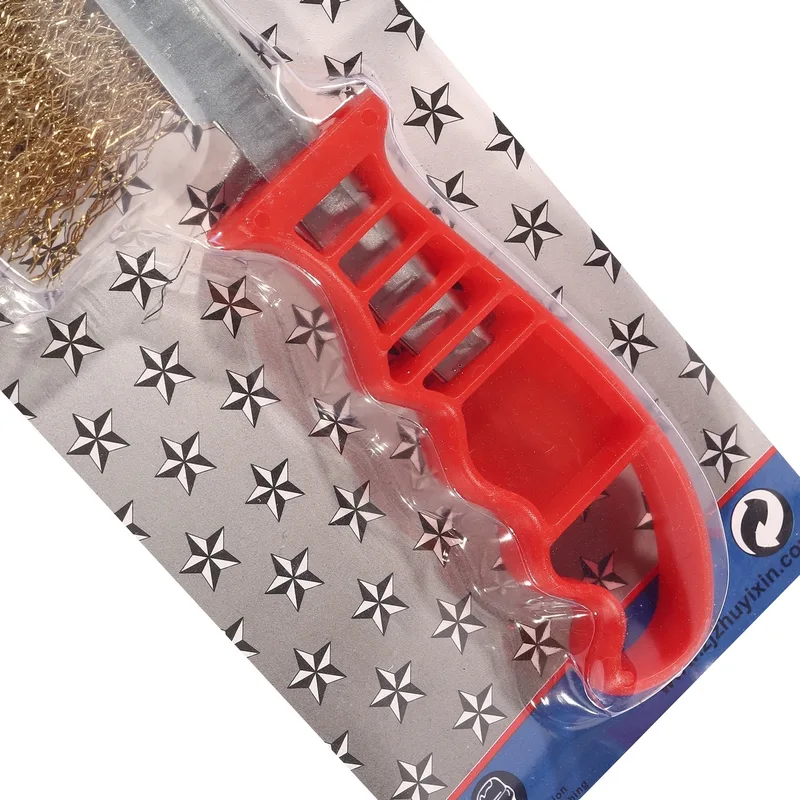 แปรงลวดทองเหลือง KEENNESS รุ่น O104 9 นิ้ว ด้ามแดง สำหรับทำความสะอาดผิวโลหะ
