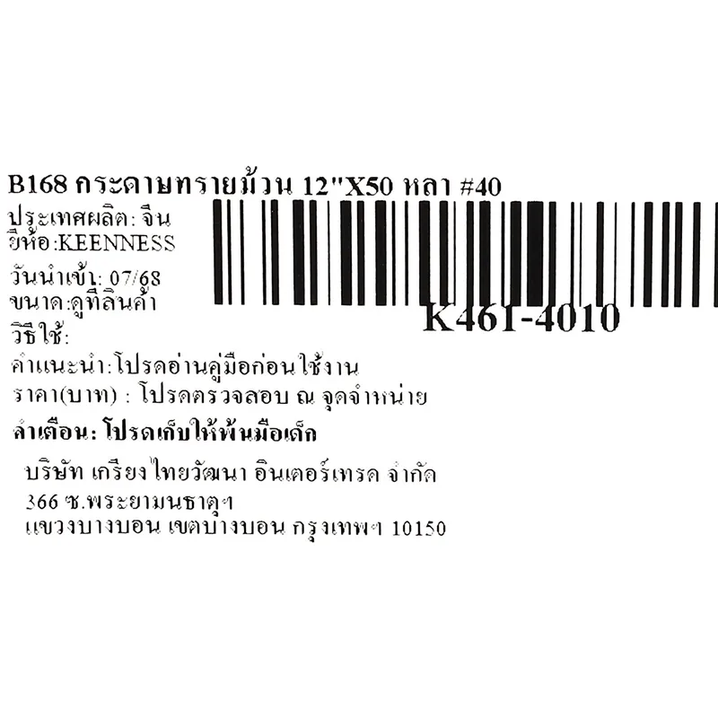 กระดาษทรายม้วน KEENNESS รุ่น B168 ขนาด 12″×50 หลา เกรด #40