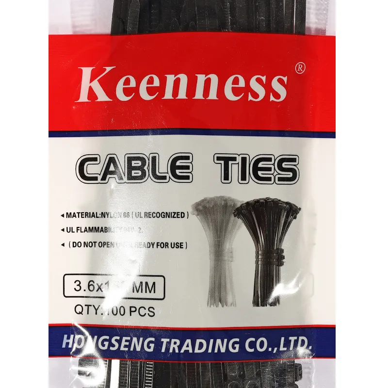KEENNESS NCB3620 เคเบิ้ลไทร์ 8″ดำ 3.6มม. 100เส้น