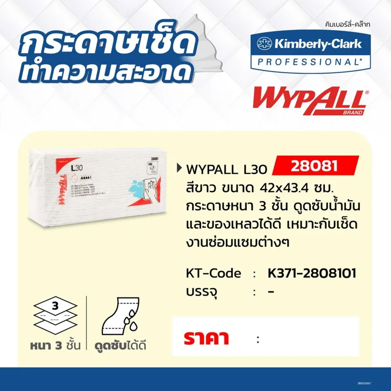 เช็ดทำความสะอาดสำหรับงานอุตสาหรกรรม สีขาว คิมเบอร์ลี่ย์-คล๊าค (KIMBERLY CLARK) รุ่น 280810 WYPALL L30