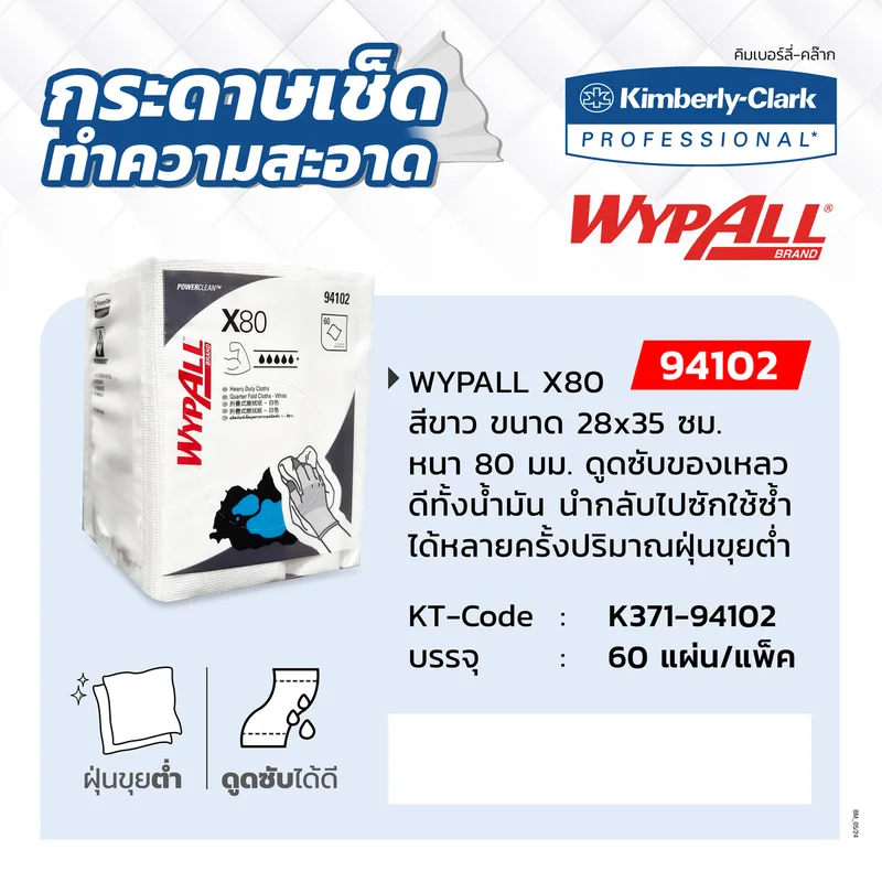 คิมเบอร์ลี่ย์-คล๊าค (KIMBERLY CLARK) รุ่น 94102 Wypall X80 ขนาดแผ่นกระดาษ 28×35 ซม. ความหนา 80 มิลลิเมตร