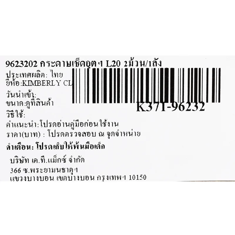 KIMBERLY CLARK 9623202 กระดาษเช็ดอุตฯ L20 (2 ม้วน/1 ลัง)
