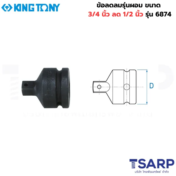 KING TONY 6874 ข้อลดลมรุ่นพิเศษ “ทรงผอม” (Slim Type) ที่ออกแบบมาเพื่อแก้ปัญหาการทำงานในพื้นที่จำกัดโดยเฉพาะ ตัวช่วยสำคัญที่จะเปลี่ยนด้ามขันหรือบล็อกลมขนาด 3/4 นิ้ว (6 หุน) ให้สามารถใช้งานร่วมกับลูกบล็อกขนาด 1/2 นิ้ว (4 หุน) ได้อย่างราบรื่น