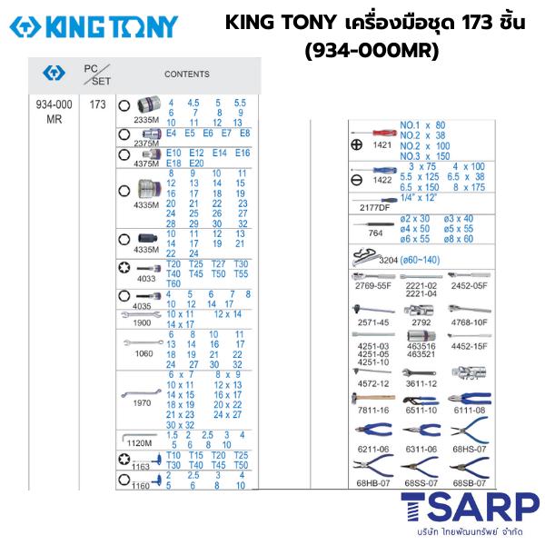 KING TONY เครื่องมือชุด 173 ชิ้น รุ่น 934-000MR