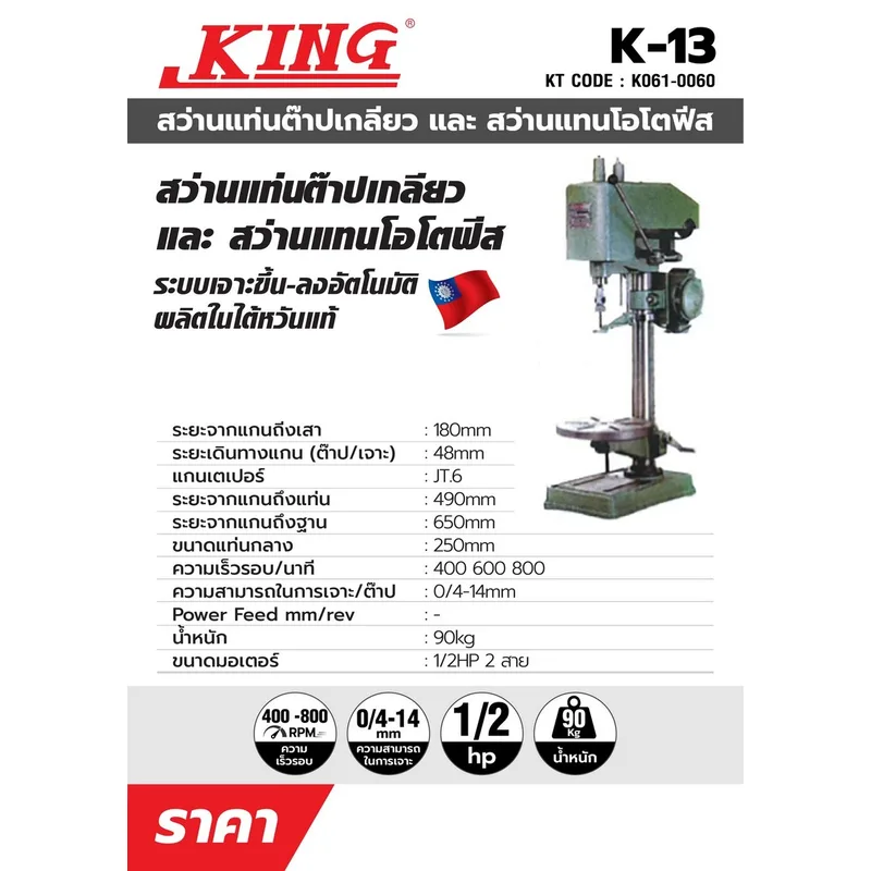 KING แท่นต๊าปเกลียว ((1/2 นิ้ว)) รุ่น K-13