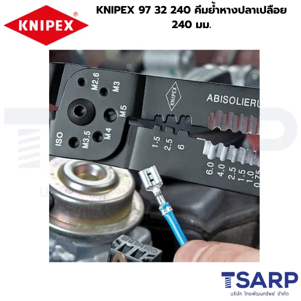 KNIPEX รุ่น 97 32 240 เป็นคีมย้ำเฉพาะทางที่ออกแบบมาเพื่อรองรับการย้ำหางปลาและขั้วต่อสายไฟแบบ เปลือย (Non-Insulated) ชนิดเปิด (Open Plug Type Connectors) หรือที่เรียกว่า Open Barrel และ F-Crimp โดยให้ความสำคัญกับคุณภาพและความมั่นคงของการเชื่อมต่อทางไฟฟ้า