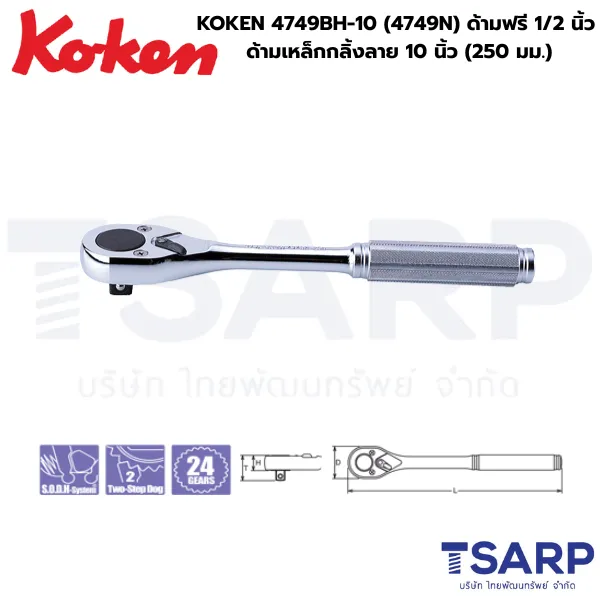 - KOKEN ด้ามฟรี (Ratchet Handle) รุ่น 4749ฺBH-10 (4749N) หัวขับ 1/2 นิ้ว เป็นเครื่องมือช่างคุณภาพสูงจากประเทศญี่ปุ่น ที่ออกแบบมาสำหรับช่างมืออาชีพที่ต้องการความทนทานและประสิทธิภาพที่เหนือกว่า ด้ามฟรีรุ่นนี้มีความยาว 10 นิ้ว (250 มม.) ซึ่งให้แรงเหวี่ยงที่เหมาะสมสำหรับการขันและคลายน็อตในงานซ่อมบำรุงยานยนต์และงานอุตสาหกรรม