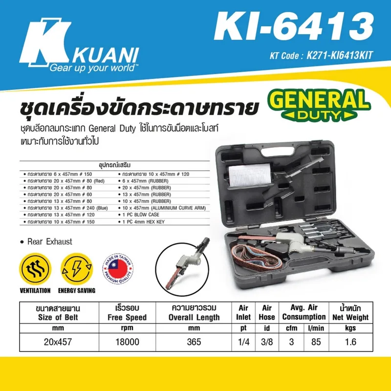 KUANI ชุดเครื่องขัดกระดาษทราย 20X457MM รุ่น KI-6413