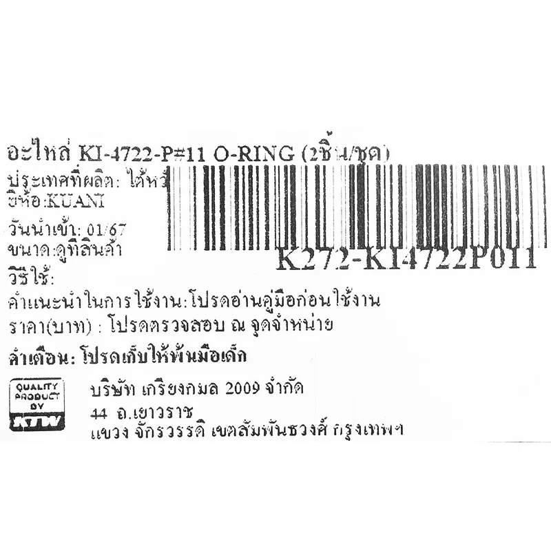 KUANI อะไหล่เครื่องมือลม KI-4722-P#11 O-RING (2ชิ้น/ชุด)
