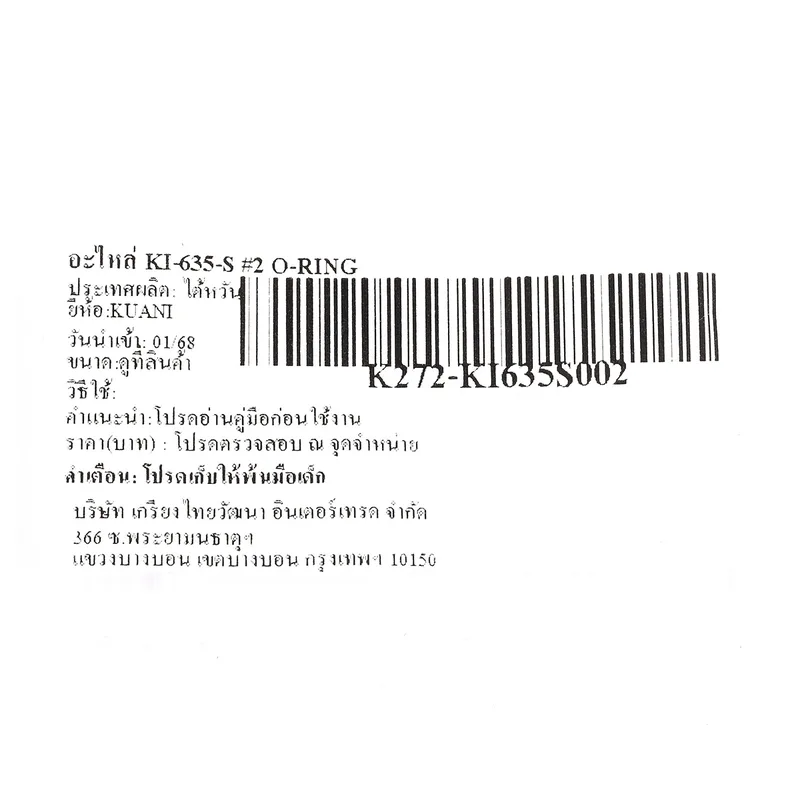 - ชื่ออะไหล่: O-RING