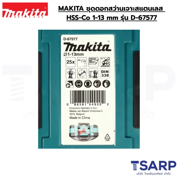 MAKITA ชุดดอกสว่านเจาะสแตนเลส HSS-Co 1-13 mm รุ่น D-67577