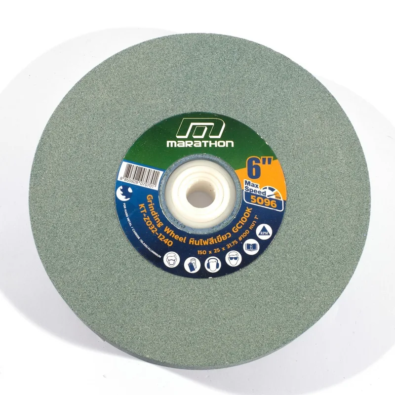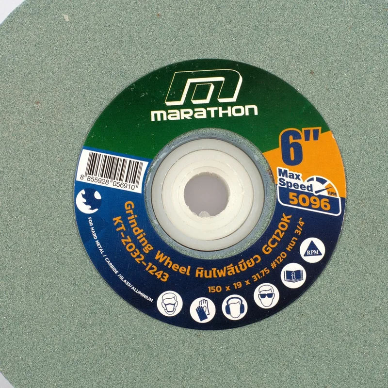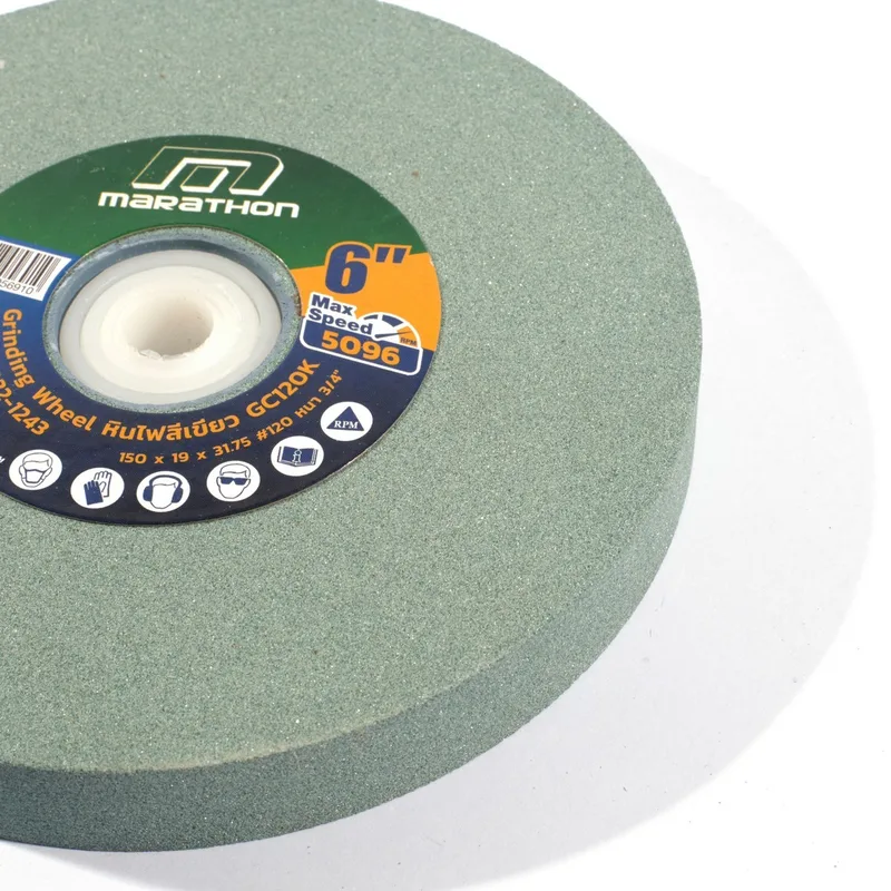 หินเจียระไน MARATHON สีเขียว) ขนาด 6″ #120 หนา 3/4″ — หินเจียระไนคุณภาพมาตรฐานสำหรับงานขัด เจียร์ และตกแต่งผิวโลหะในงานอุตสาหกรรม