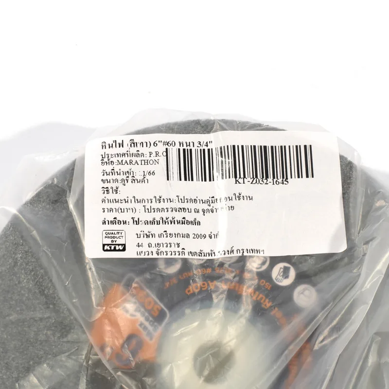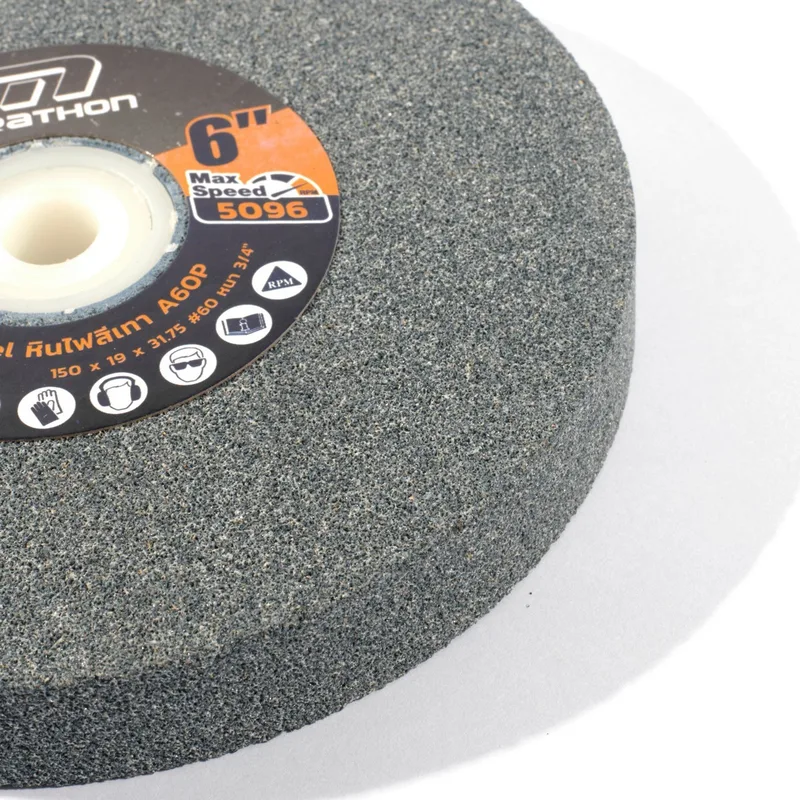 หินเจียระไน MARATHON สีเทา) ขนาด 6″ #60 หนา 3/4″ — หินเจียระไนคุณภาพมาตรฐานสำหรับงานขัด เจียร์ และตกแต่งผิวโลหะในงานอุตสาหกรรม