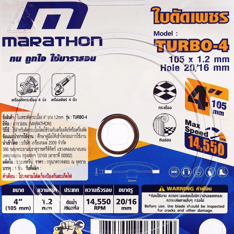 MARATHON TURBO-4 ใบเพชรบาง 4″ X 1.2 MM