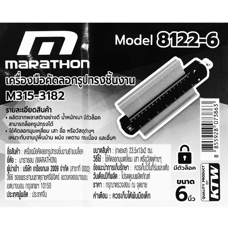 เครื่องมือคัดลอกรูปทรงชิ้นงาน ขนาด 6 นิ้ว TILER by MARATHON รุ่น 8122-6″ มีตัวล็อค