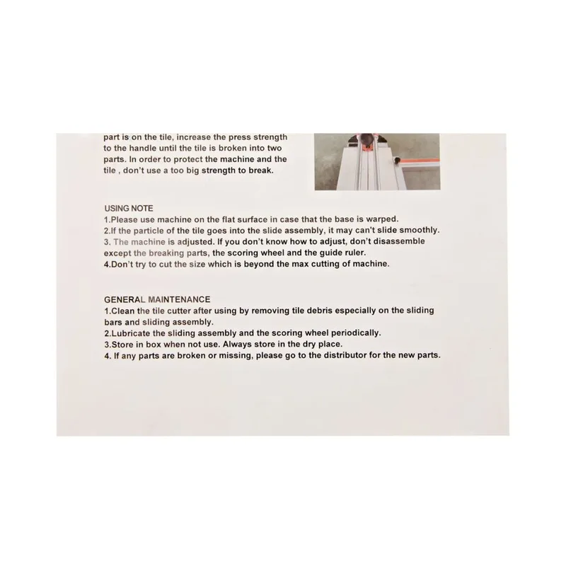 - ความยาวในการตัดกระเบื้อง: 1000mm