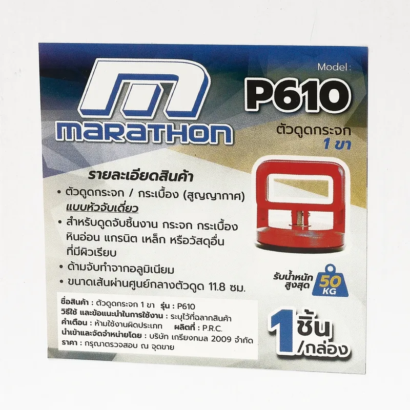 MARATHON P610ตัวดูดกระจก1ขา รับน้ำหนักสูงสุด50KG.