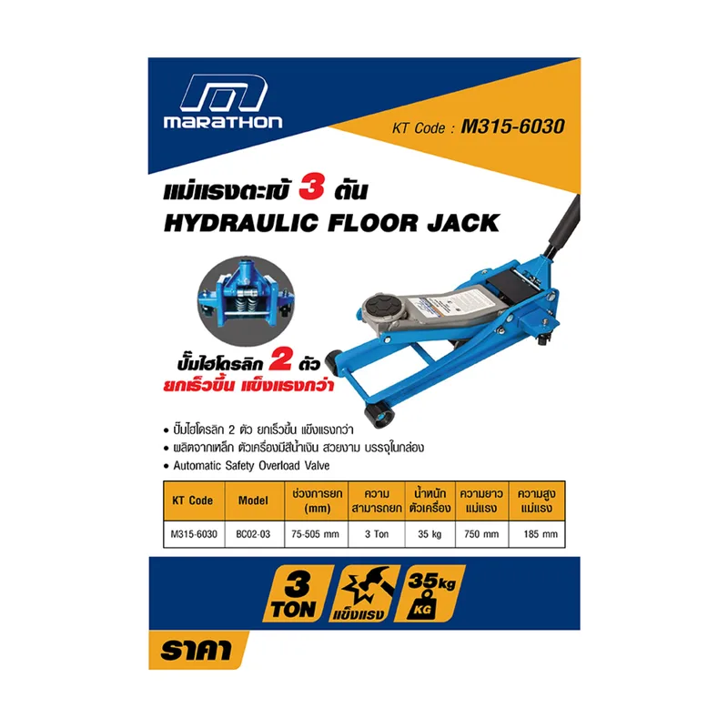 แม่แรงตะเข้ MARATHON รุ่น BC02-03 ขนาด 3 ตัน