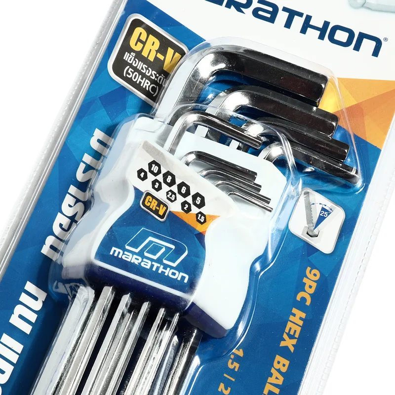 MARATHON ชุดประแจแอลหกเหลี่ยม+บอล ก้านยาว 9ชิ้น