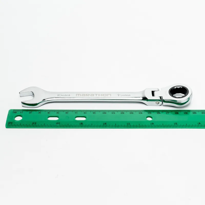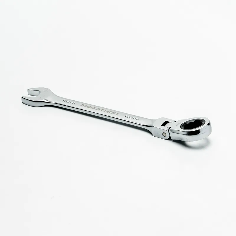 MARATHON ประแจแหวนเกียร์คอพับ เบอร์ 15 ยาว 200.5 มม. รอบปรับ 5 องศา 72 ฟัน คอปรับได้ 180 องศา (มาราธอน)