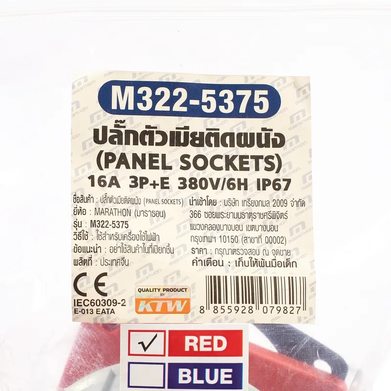MARATHON IP67 ปลั๊กตัวเมีย 16A/4P/380V/6H