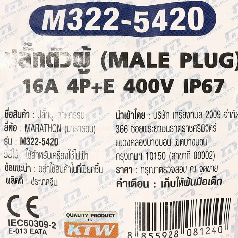 MARATHON IP67 ปลั๊กตัวผู้ 4P+E 16A-6H 400V
